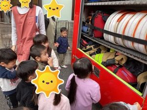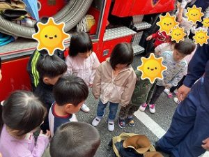 大きな消防車🚒とかっこいい消防隊🧑‍🚒に目を輝かせていたつばさ組さん🤩