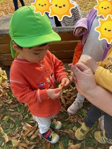 前の公園では、どんぐり拾いに落ち葉集め🪶