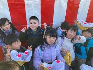 最初はドキドキしていた子どもたちも、友だちと一緒に参加するうちに笑顔が見られ、節分ならではの行事をみんなで楽しく体験することができました🥰